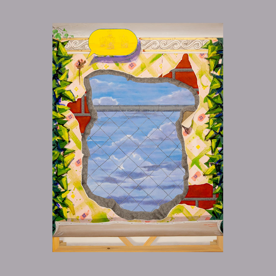 Interiorismo #3. 2022. Pintura acrílica y lámina dorada sobre lienzo, 48” x 36’’.