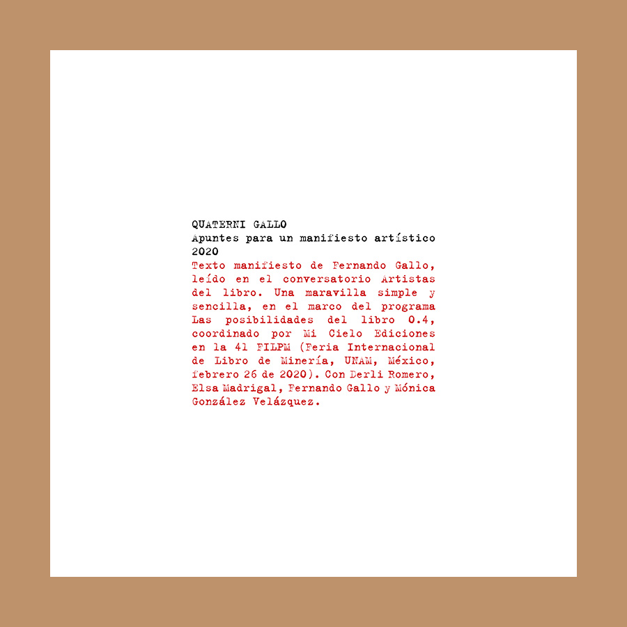 Pro/posiciones. Transitar como trans_citar es transcribir a partir de un punto ciego. 2012. <br>11.81"X 5.90" (30 x 15 cm) <a href="https://anagmendez.net/museo/sites/default/files/2021-05/gallo-libro-proposiciones.pdf" target="_blank">Enlace a PDF
